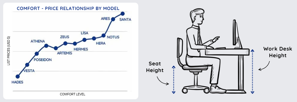 The chart illustrates the relationship between the comfort level of our ESD protective chairs and their pricing. The comfort scoring is based on criteria such as ergonomic design, seating comfort, and adjustability. When evaluated together with the price axis, it helps identify the most suitable product by balancing budget and performance needs. However, it should be noted that comfort assessments may vary depending on personal preferences and individual usage habits.